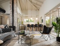 עם רהיטים קלילים, מטבח צבעוני והרבה יצירות אמנו...