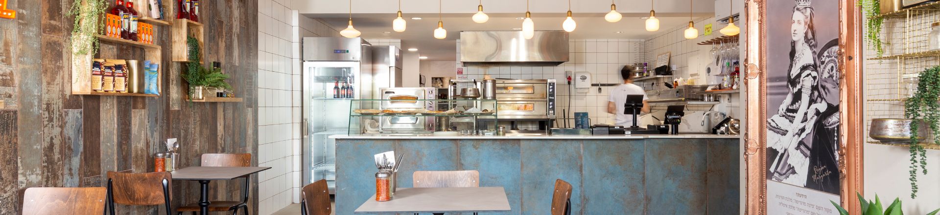 המקום תוכנן לסוגים שונים של שירות ללקוחות. מסך הזמנות בשירות עצמי נוח ונגיש להזמנת "טייק אויי" או ישיבה במקום, דלפק הזמנות ותצוגה של מבחר פיצות לראווה, אזורי ישיבה שונים בפנים, בחוץ ובחצר פנימית הצמודה למקום. מותאם לסועדים בודדים, זוגות, משפחות וקבוצות.