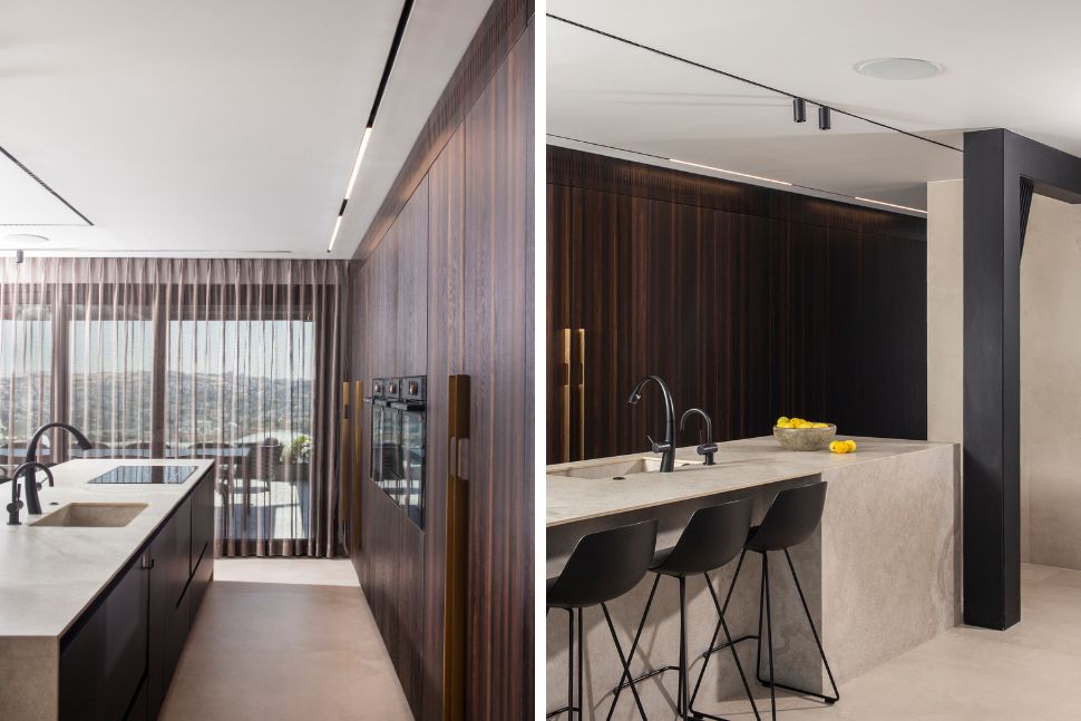 כשהדיירים, הורים לילדים שגדלו ועזבו את הבית, החליטו לעבור מדירה לבית פרטי, הם ביקשו מהמעצבת שהבית יראה מודרני ועכשווי, כמו כן, היה חשוב להם מאוד שבפנים הבית ובחוץ יהיה קשר עם הרי ירושלים. וחוץ ושבשניהם תשרור אווירה ביתית, אינטימית והנעימה. זה מה גרם למרפסת מוזנחת שלא הייתה בשימוש להפוך לאחת מהפינות המרתקות בבית. שטחה נתחם באמצעות שני קירות גבוהים, לאורכה נבנתה בריכת שחייה ועוצבו בה שתי פינות ישיבה שאחת כאמור פונה כולה אל הנוף הפתוח.