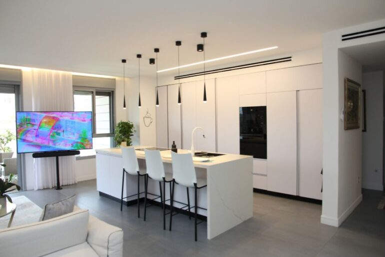 האי הלבן במטבח מקביל לסלון