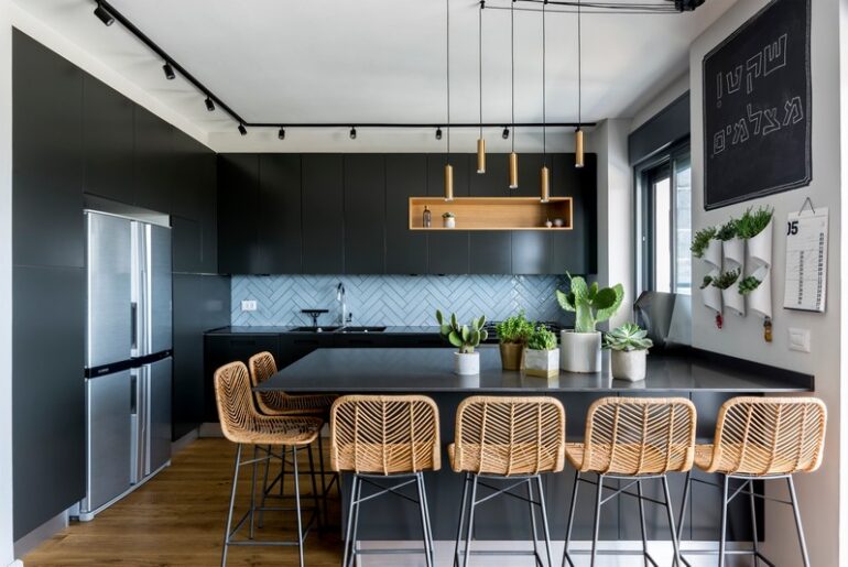 עץ, ברזל וראטן הם רק חלק מהחומרים שמשולבים בצורה נפלאה במטבח