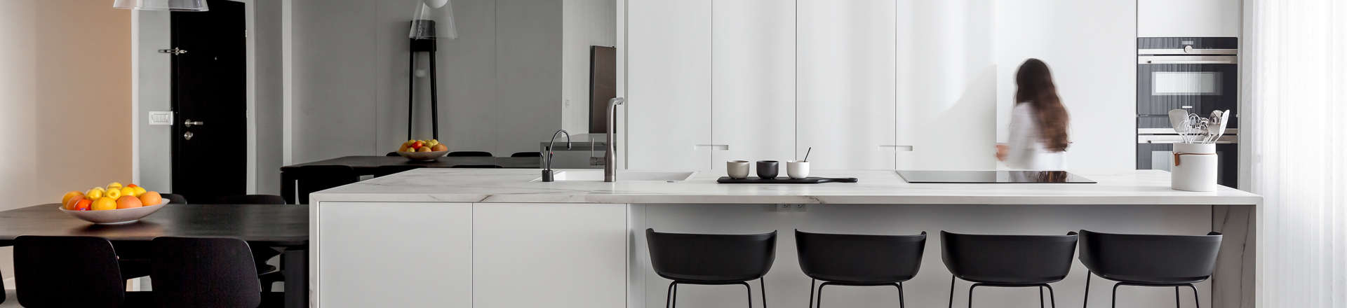 זוג עם ארבעה ילדים שמתגורר ברמת גן חלם על דירה יפה, מודרנית ופונקציונלית. שיפוץ הדירה התחיל מהריסת פנים הדירה כולה: פתיחה של חלל הסלון והמטבח, פתיחה של חלון המטבח והוויטרינה בסלון למקסימום האפשרי, כמעט עד התקרה, למעט עמוד אחד.