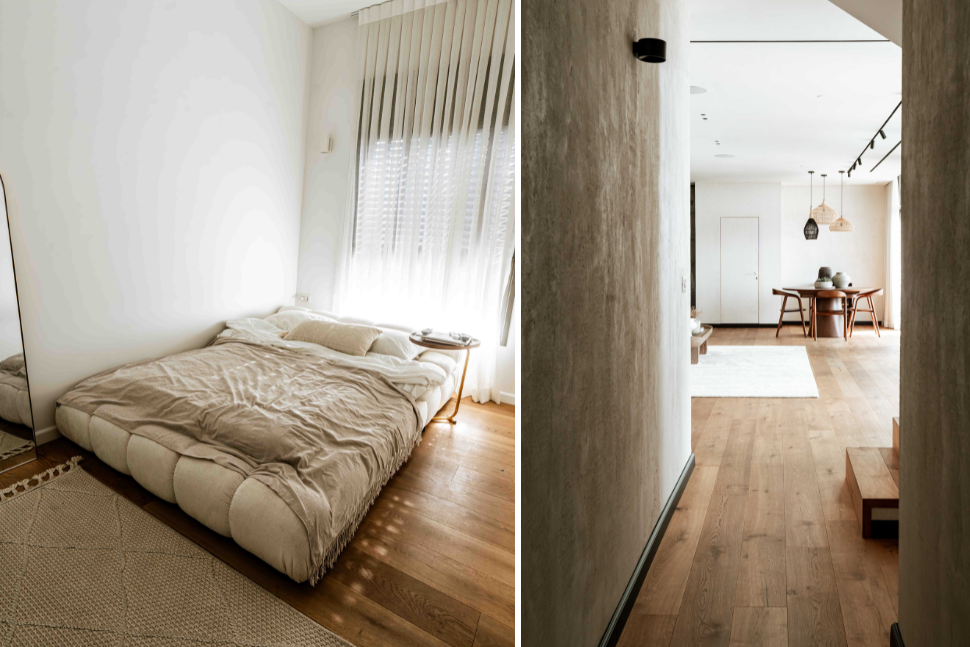 "הדיירים, שרכשו את דירת הדופלקס לפני מספר חודשים ומאז חיו בה ללא תחושת שייכות, פנו אלי מתוך היכרות עם סגנון העבודה שלי" כך פתחה המעצבת ליאת עמוס את הריאיון איתה. "המוטו שלי בעיצוב הפנים, מבוסס על הטבע. הוא מתבטא הן באלמנטים עשויים חומרים טבעיים והן בצבעים ומרקמים. הזיקה לטבע היא זו שחיברה ביננו. שלמים לחלוטין עם החלטתם הם נתנו לי יד חופשית לעצב להם את ביתם, בחרתי להעניק להם בית במראה על זמני ושתהיה בו תחושה של שורשיות עם קשר לטבע ואימא אדמה מלווה בנועם, רוגע ושלווה".