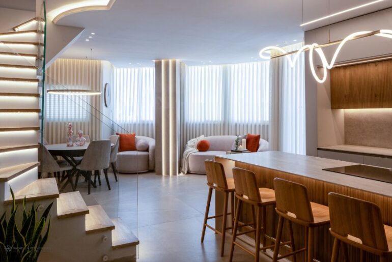 כשבני זוג בשנות השלושים לחיהם, הורים לבן ובת, גילו שהפנטהאוז בבניין בו הם גרים עומד למכירה, הם החליטו לרכוש אותו ולהתאימו לדרישות המשפחה. מיד התברר הצורך בהרחבה והגדלה של שטחן של שתי הקומות, הקומה בה מרוכז המרחב החברתי- מטבח, סלון, ופינת אוכל והקומה העליונה, בה רוכזו חדרי השינה.