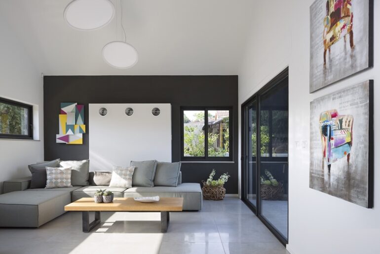 ניכרת חשיבה על כל פרט ופרט, ניצול מיטבי של המגרש ושימוש חכם בצבעים. התוצאה מהממת ביופיה, מבלי לפגוע בפונקציונליות של הבית.