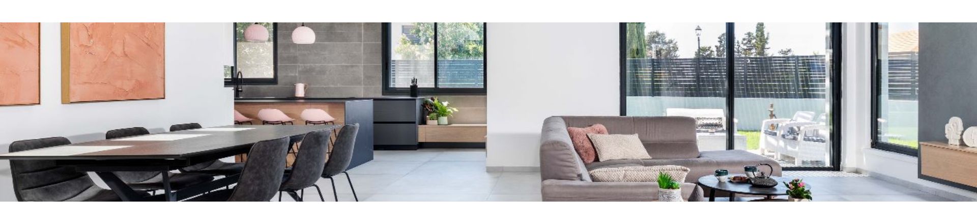 את גבולות פינת האוכל מסמן מלבן עשוי סרגלי עץ, השקועים בתקרה ומתחתיו, משרבייה עשוייה ברזל שחור שמעוררת סקרנות. בהמשך מתגלות עוד הפתעות.