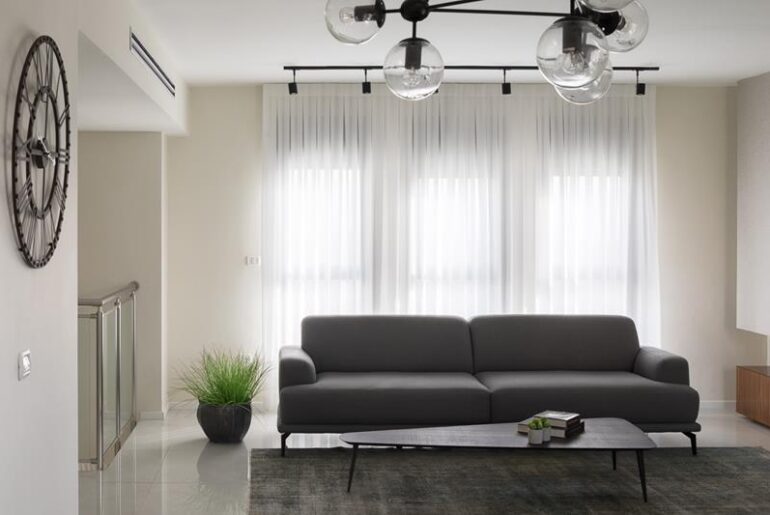זוג בשנות השלושים לחייהם המגדלים 3 בנות רצו לייצר חלל מגורים באווירת קטלוג מינימליסטי ונקי, ובחדרי השינה אווירה חמימה אך לא עמוסה. בעלת הבית מאוד אוהבת לבשל, כך שמשטח עבודה רחב היה חלק בלתי נפרד מתכנון המטבח. המטבח אף עבר "מתיחה" והתרחב לחלל פינת האוכל, כאשר אותו קיר ארוך קיבל חיפוי בריקים לבנים ותאורת קיר על מנת לייצר אוירה מעט חמימה.