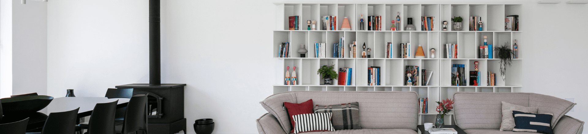 מבט חזיתי לעבר הספרייה, האלמנט העיצובי, המרכזי והמעניין בסלון