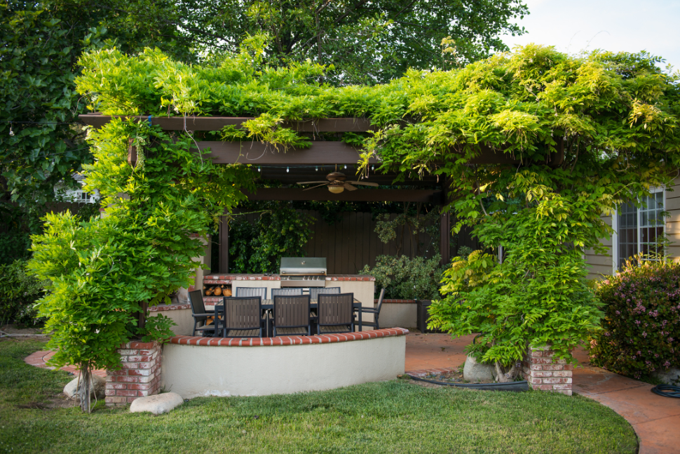 גזיבו עם סכך ירוק רב שנתי