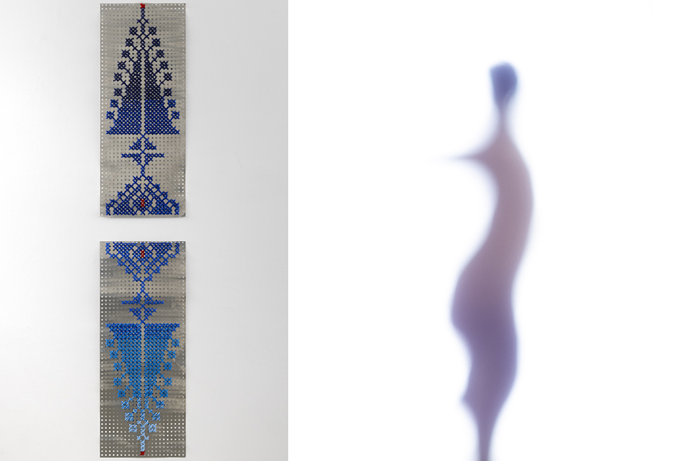 אפרים ווסה, של הגוף, 2026, הדפסה דיגיטלית באדיבות האמן | Re-Threading, נרדין סרוגי, 2026, רסיסי דיוקן, אוצר לוי פרובאם, גלריה ארטפורט. צילום: טל ניסים, התמונה באדיבות ארטפורט תל אביב