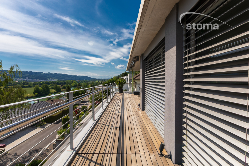 הראשון: STOMA – צילון חיצוני נאסף, המיוצר בשוויץ, מהווה פתרון הצללה מתקדם ויעיל במיוחד. צילון חיצוני נאסף הינו בעל יתרונות רבים: בעונת הקיץ הוא מסוגל להוריד את הטמפרטורה בתוך הבית בעד 10 מעלות צלזיוס, בכך שהוא עוצר את קרני השמש לפני שהן מגיעות לחלונות. בנוסף, באמצעות הטיית שלבי הצילון, ניתן לשלוט בכמות האור החודרת לחלל, לספק אוורור ולהכניס את הנוף החיצוני מבלי לוותר על פרטיות ונוחות.