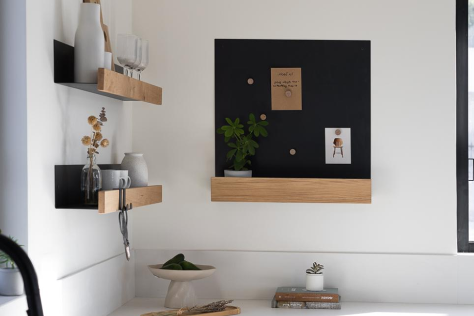 מערכות מידוף CUT: סדרת מדפי קיר מודולריים שמאפשרת ליצור קומפוזיציות נקיות ומדויקות על הקיר. המדפים מבוססים על שילוב של עץ אלון ואלומיניום/מתכת דקה, ומגיעים במידות שונות – ממדף יחיד ועד מערכות שלמות – כך שניתן להרכיב אותם בהתאם לחלל ולצרכים.