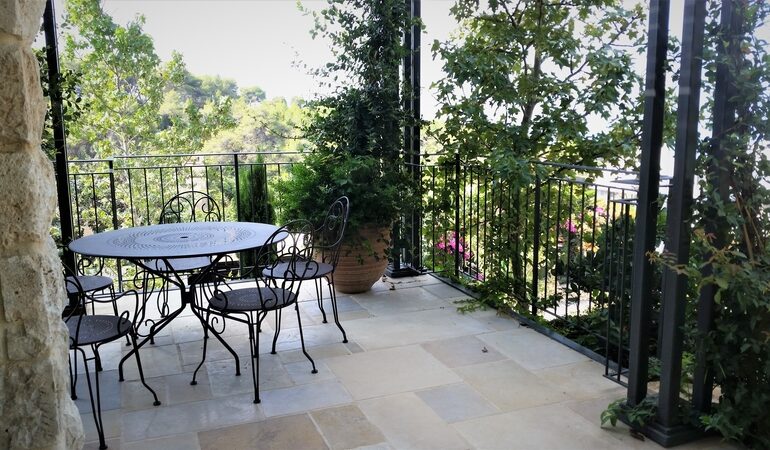 פינת ישיבה בחוץ מברזלמרפסת נוף בשכונת דניה בחיפה