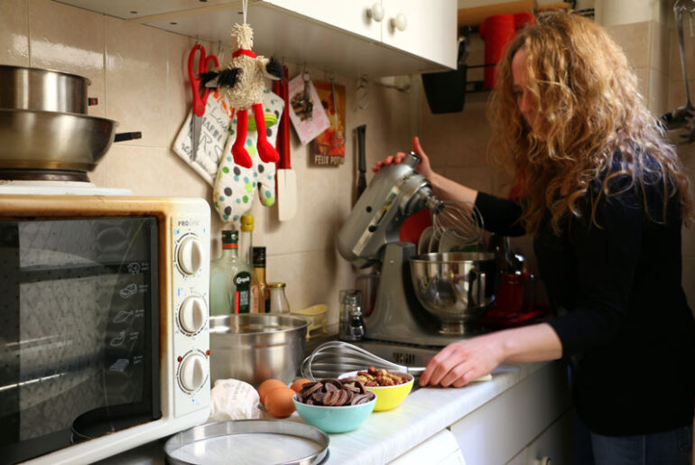 הכי טוב בתכנון המטבח: "המטבח שלי הוא מטבח פריזאי טיפוסי, 2 מטר של מטבח (באמת!). אני מאמינה שגודל המטבח הוא משמעותי, אבל הוא לא ימנע ממני להכין כל מה שאני רוצה. כשצריך, כל הבית יכול להפוך למטבח. בקיצור, אין שום דבר טוב בתכנון המטבח הזה… שהרי הוא ממש פינה קטנה בתוך דירה פריזאית קטנה, דבר המאפיין מאוד את הדירות בעיר האורות".