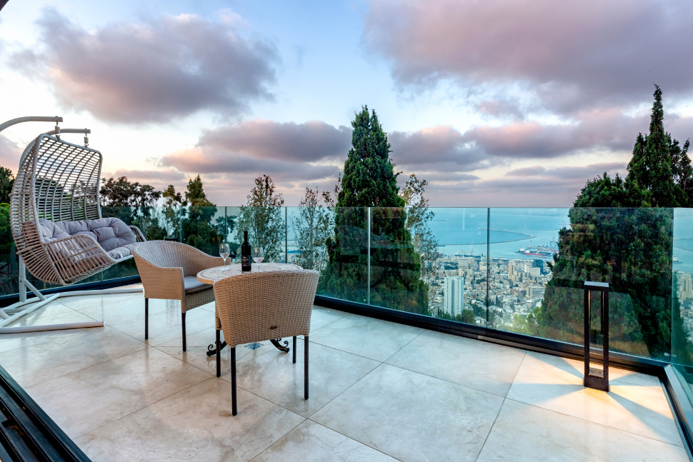 מרפסת קטנה צופה אל מפרץ חיפה