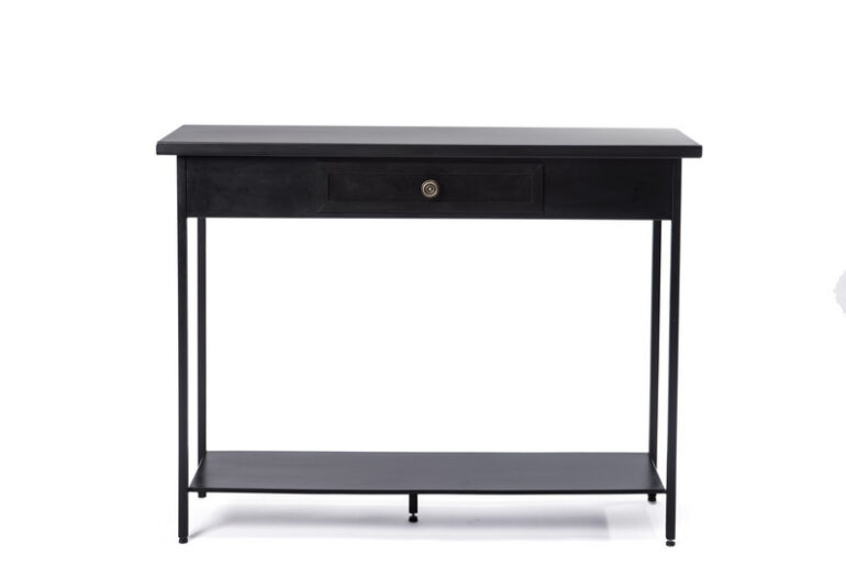 קונסולה מברזל שחור בעיצוב נקי מותאמת לכניסה לבית. ארטיג'אני