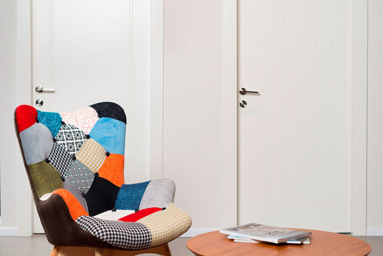 אולם תצוגה דלתות פנים דיזיין סנטר. בתמונה דלת TOP בסגנון רטרו המשלבת זכוכית סבתא. קרדיט צילום: אייל טואג