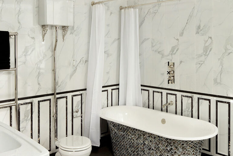 אוסף ייחודי של ברזים, מקלחות ואביזרי אמבטיה משלימים בהשראת הזוהר של תקופת הארט דקו של שנות העשרים והשלושים.