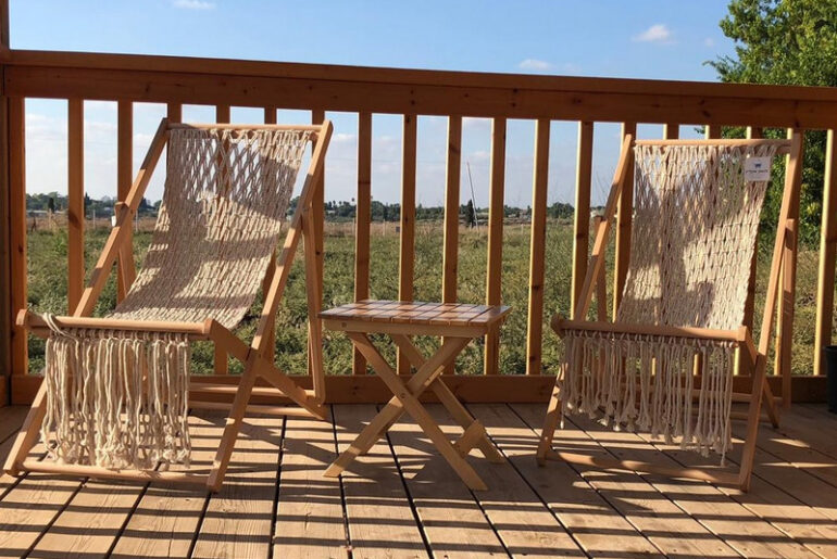 כיסא מקרמה למרפסת או לחוף, מתכוונן, מתקפל וקל לנשיאה |  399 ₪ ליח' / 899 ₪ לסט עם שולחן