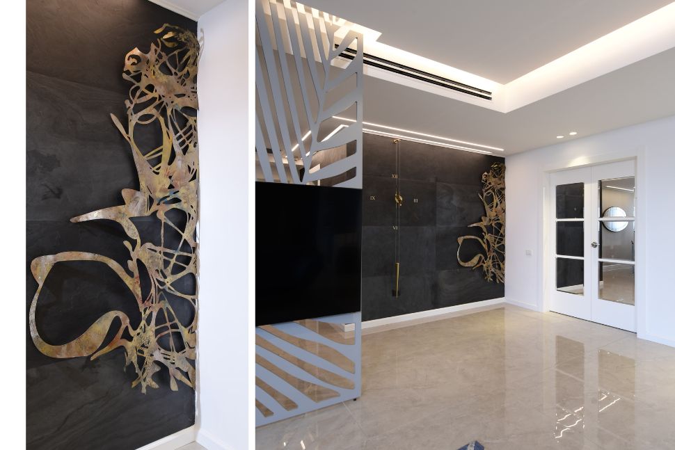 אמנות קיר היא לא רק אלמנט עיצובי – כמו תכשיט עם ערך רגשי וייחודי, היא לב פועם בחלל. היא מוסיפה שכבה של עומק, אווירה ונשמה. מעבר לאסתטיקה, היא ביטוי לרגשות, זיכרונות וחיבורים אישיים – גם של היוצר וגם של מי שבוחר לתלות אותה בביתו ולעיתים גם של מעצבי פנים שמעורבים בבחירה מתוך היכרות עם בני הבית והאומנות/האומנים. היום יש מגוון עצום של סוגי אמנות קיר – מציורי שמן מופשטים ועד לפסלים תלויים, תכשיטי קיר ויצירה בעץ או בחומרים חדשניים. כל אחד יכול למצוא את מה שמרגש אותו ומתאים לאופי הבית. הכתבה הזו מתארת את הקשר המיוחד בין אמנות, יוצרים, לקוחות – והבתים שמארחים אותם.