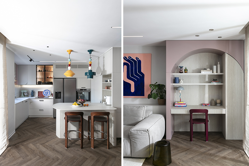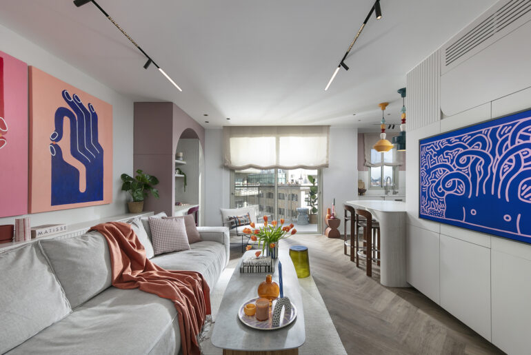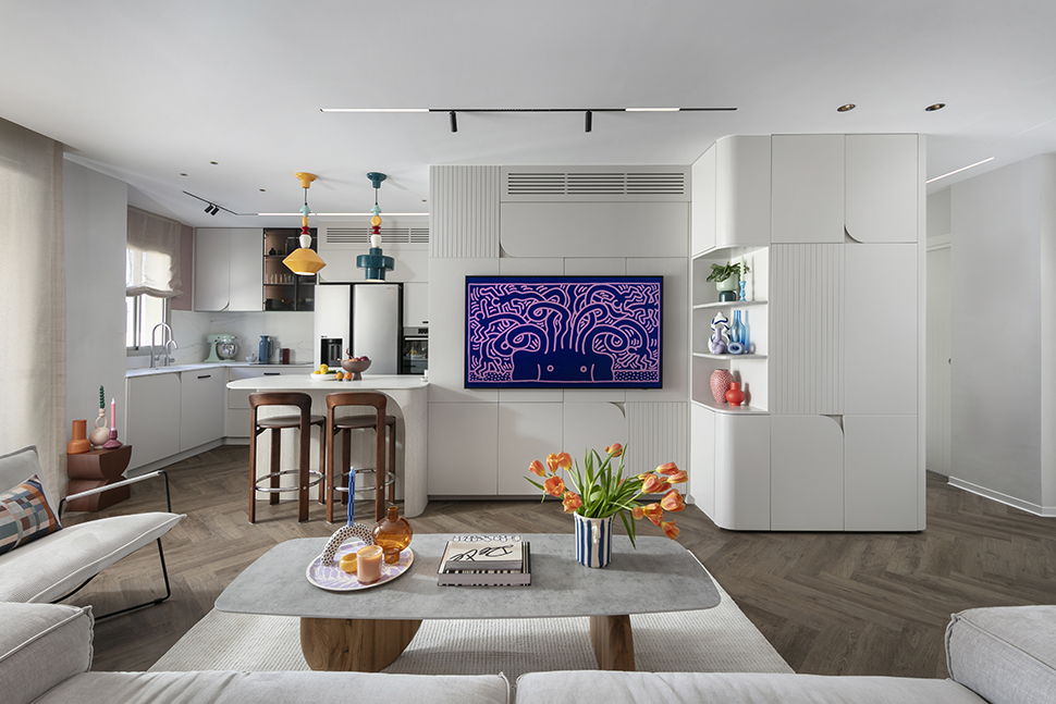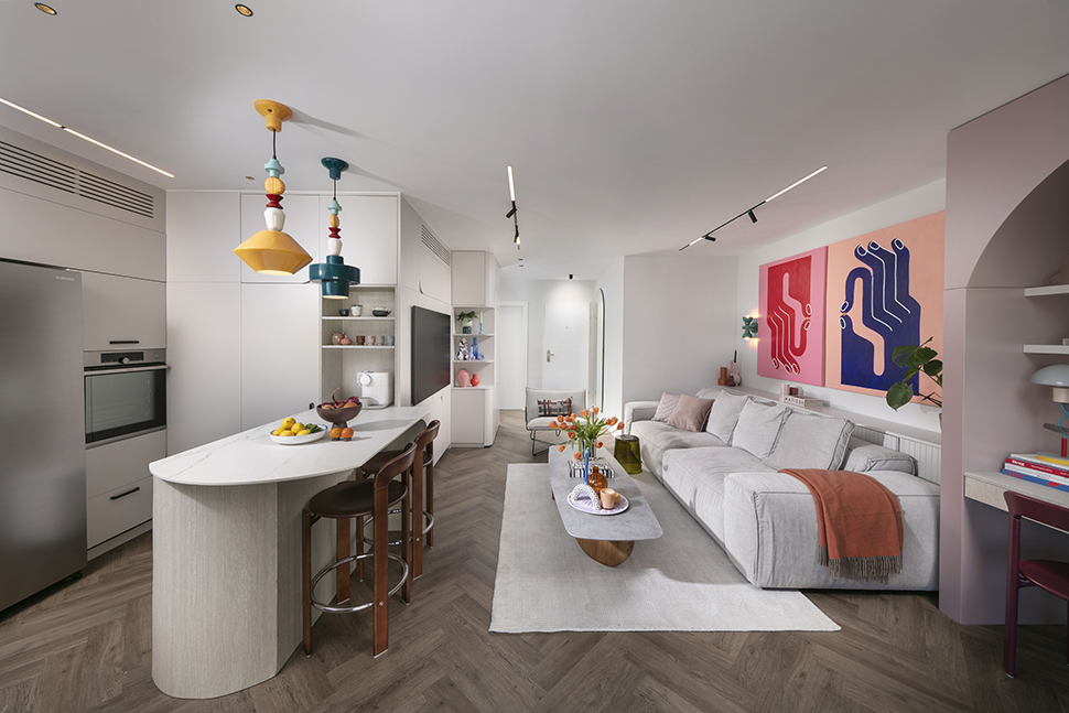 עבורם זו אנרגיה יצירתית שמפעילה אותם ונוכחת בחייהם. לצד זה, רצינו לאזן את הצבע והשמחה, כדי שהתוצאה הסופית תרגיש מדודה ונכונה ולא רועשת ועמוסה" מסבירות האדריכליות ומעצבות הפנים אנוק רון ושירה דרומי ל"בזלת אדריכלים".
