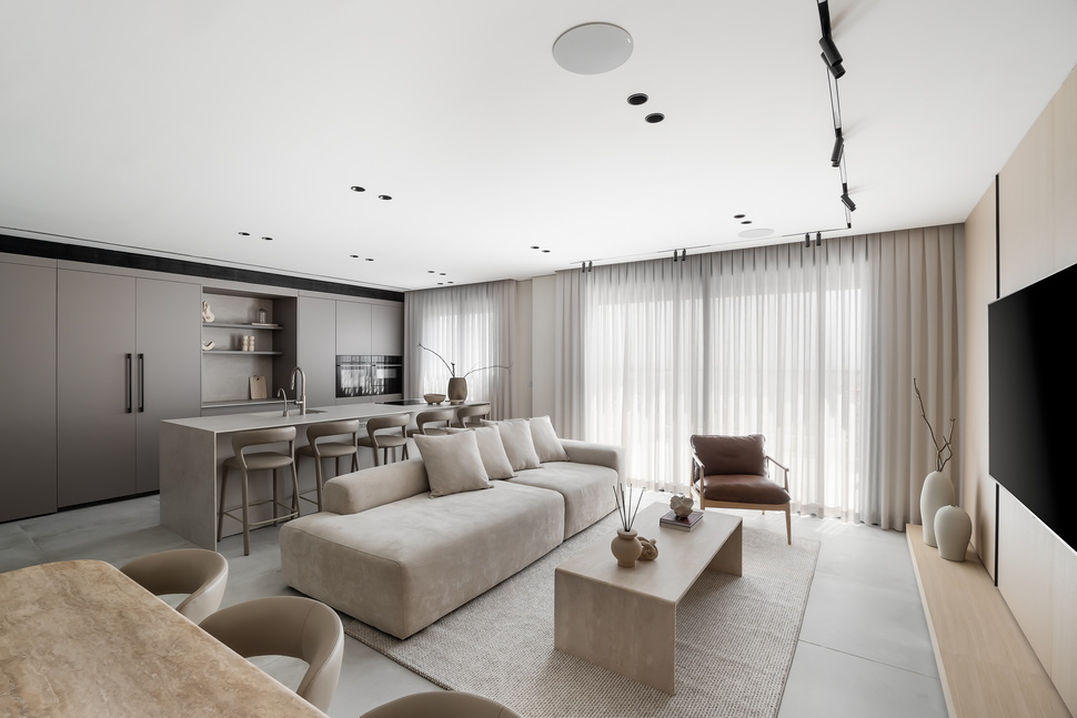 הדירה ממוקמת ב־חולון, ועל התכנון והעיצוב אמונה מעצבת הפנים נופר קוריאט, שליוותה את המשפחה משלב קבלת המפתח ועד לפרטים הקטנים ביותר – במטרה לייצר בית מודרני, נעים ומדויק, המותאם לחיים של משפחה צעירה ודינמית.