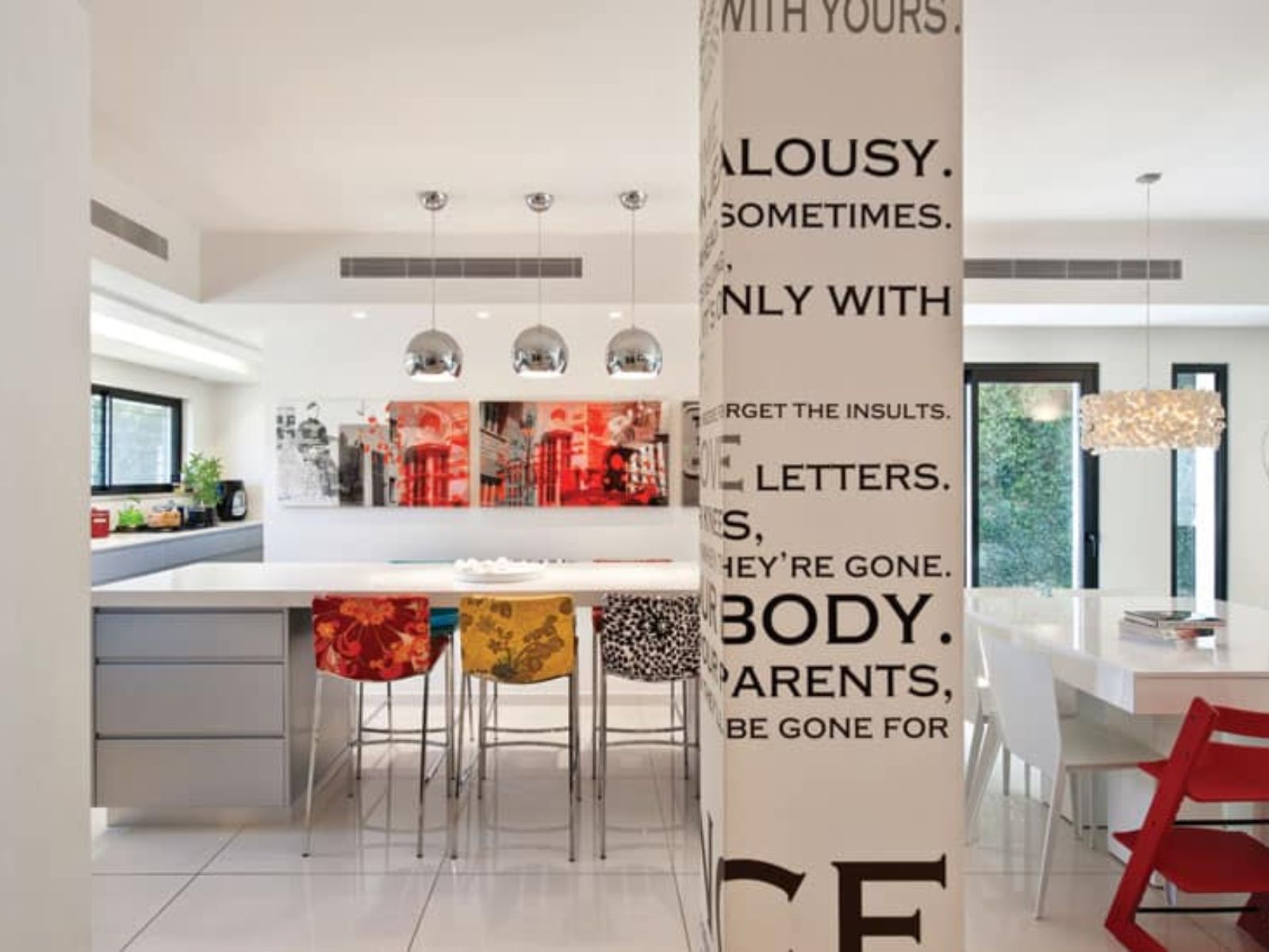 אם פעם עמודי התמיכה היו חבויים בתוך הקירות, היום, כשבכול בית או דירה בולט לעין סגנון האופן ספייס, לעמודי הבטון התומכים בתקרה ובקומות שמעל, חייבים למצוא פתרון הולם. כשמדובר בשיפוץ אי אפשר להרוס אותם יחד עם שאר הקירות המיותרים ובבנייה חדשה חייבים לשלב אותם בתכנון האדריכלי. אפשר להשאיר אותם כמות שהם כמזכרת לחלוקת החדרים שהייתה במקור ואפשר לתת להם הסבר עיצובי אחר. כמו לדוגמה, בית שבו עמודי הבטון מסמלים למעשה את החלוקה בין האזורים השונים במרחב הבילוי והאירוח