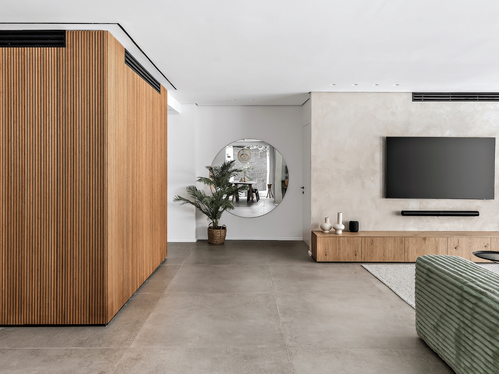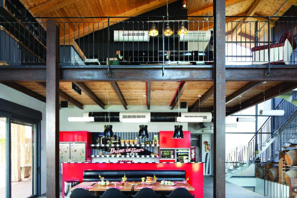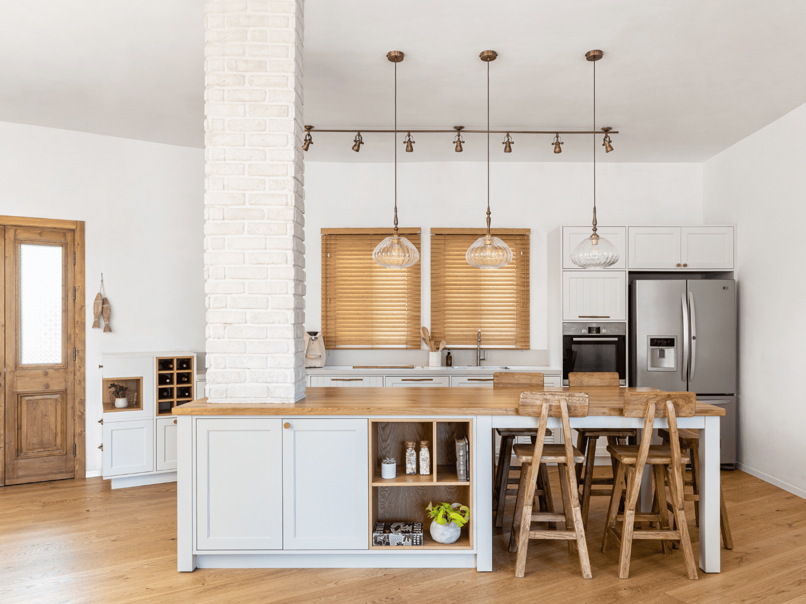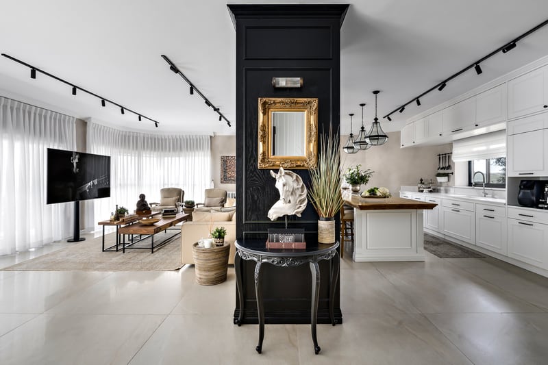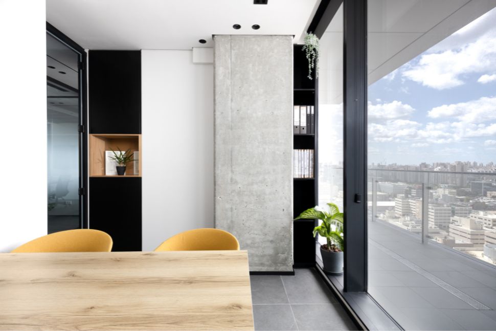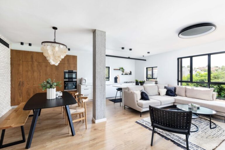 עמודי הבטון מסמלים את גבולות המטבח והסלון