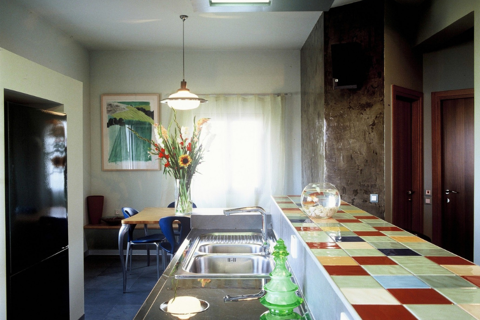 חשיבה קצת אחרת, מטבח לא סטנדרטי, שימוש בצבע למטבח רעיון מצויין.