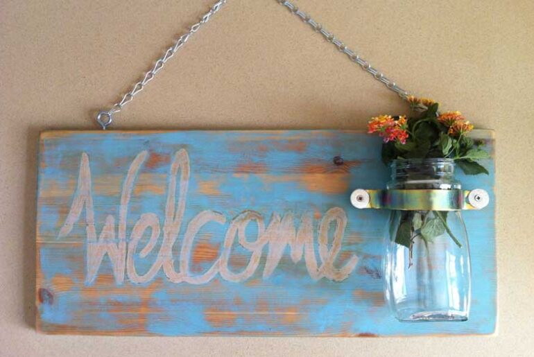 הבתים הכי יפים הם בתים עם אופי. לאו דווקא כאלה שמעוצבים לעילא ולעילא, או כאלה שיש בהם את הטרנדים הכי חמים. בתים עם אופי הם בתים שכבר כשנכנסים אליהם, יודעים משהו על מי שגר בהם. אם אתם גם רוצים כזה בית, כדאי שתתחילו כבר בכניסה. בהדרכה שלפניכם תלמדו כיצד להכין שלט עץ בסגנון שאבי-שיק, עם הכיתוב "Welcome". אתם יכולים להיות בטוחים שהאורחים שלכם ישימו לב לזה!