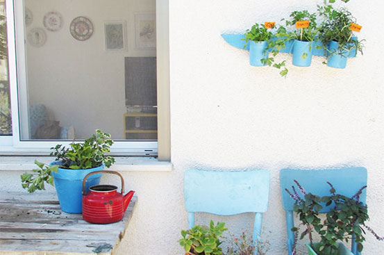 לפעמים פרויקט אחד מוביל לפרויקט אחר ופתאום ניצתת מחשבה על מחזור, המצאה של משהו חדש יש מאין ושאריות קרשים בכל מיני צורות יכולות למצוא לעצמן חיים חדשים. תוסיפו לכאן גם קופסאות שימורים שהצטברו ויש לנו יופי של שידוך. שלוש קופסאות שימורים מסכנות פוגשות קרשים ומכאן הכל כבר הסטוריה ועציצים שנמצאים ממש מחוץ לדלת הכניסה של הבית.