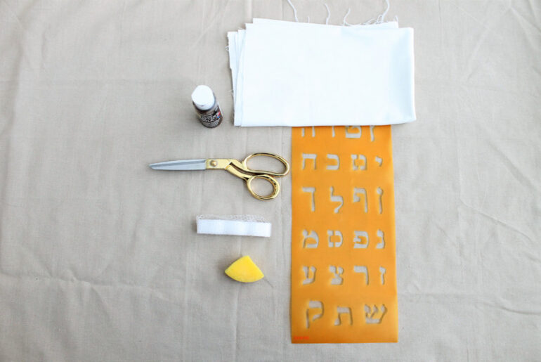 גזרו את הבד במידה הרצויה (כך שיכיל את המצה). צרו מכפלות לשולי הבד באמצעות סרט המכפלת, וגהצו במגהץ כדי לקבל רצועה מלבנית.