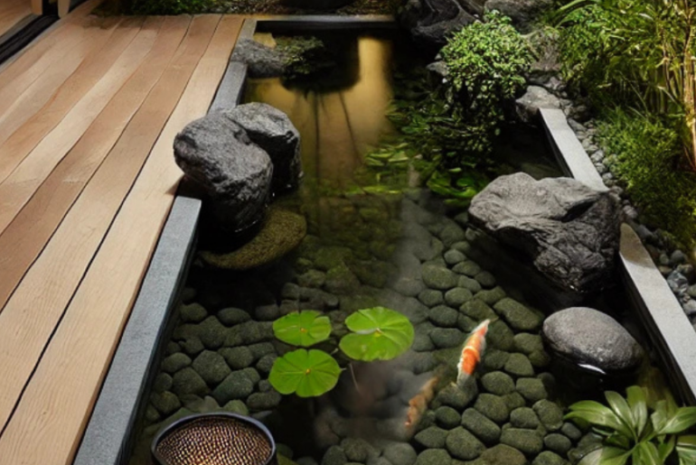 בריכת דגים בגינה בעיצוב טבעי