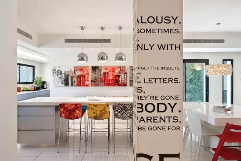 העמוד שהיה תקוע באמצע כוסה בטפט עם טיפוגרפיה, הוחלפו כמה כיסאות לצבעוניים ונתלו שתי תמונות