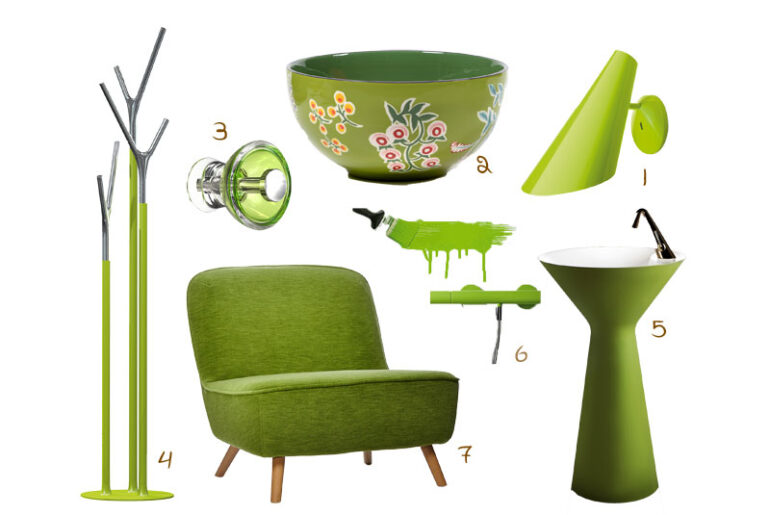 צבע השנה 2017: 1. גוף תאורה מבית קמחי תאורה, צילום: יח"צ 2. קערה מבית FOX HOME, צילום: אפרת אשל 3. ידית Frost של דומיסיל, צילום: יח"צ 4. מתלה בהשראת גזע עץ של דומיסיל, צילום: יח"צ 5. כיור של Mody, צילום: יח"צ 6. ברזים מבית אלוני, צילום: יח"צ 7. כורסה moooi של טולמנ'ס, צילום: יח"צ