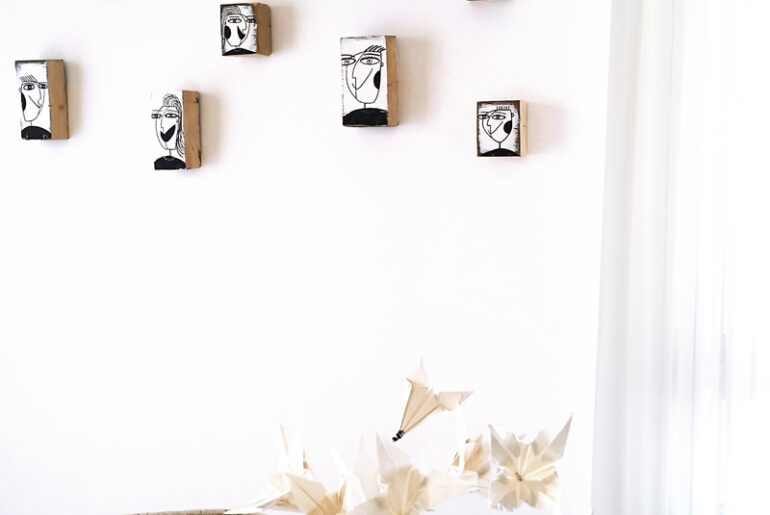 בחלל שמעוצב בגוונים מונוכרומטיים של שחור, אפור ולבן נבחר פרקט אפור לתת את הטון, בשילוב ספה שחורה, טקסטיל ואקססוריז בפלטת צבעים המעניקה רוגע ושלווה. בפינת האוכל השולחן עשוי מעץ גולמי, מעשה ידי המעצבת. הוא צבוע לבן ומשולבים לצידו כיסאות לבנים מיציקת פלסטיק. על הקיר תלויות קוביות עץ, עליהן מצוירות דמויות מקוריות בסגנון נאיבי של "חברותא", גם הן מאויירות על ידי המעצבת. הדמויות מצוירות בשחור על רקע לבן בשילוב עם צבע העץ, המאפיינים את סגנון העיצוב הנורדי. צורת התלייה על הקיר אף היא מיוחדת, בשל העובדה שעוביין של הקוביות הוא 7 ס"מ ולכן נוצרת תחושה של עומק. עוד אפשרות היא להניח את הקוביות בספרייה כמחזיק ספרים, על מדף או בכל פינה אחרת בבית.