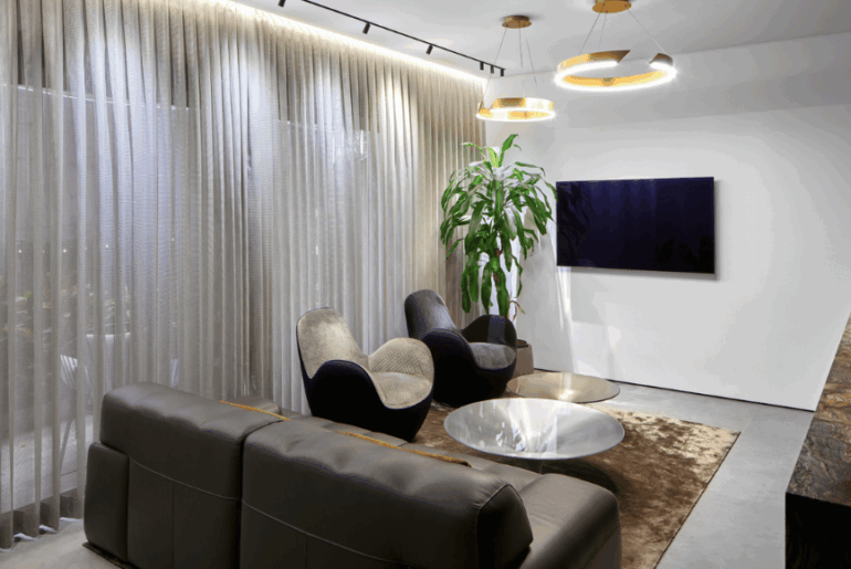 ווילון : אם העיצוב היום כולל בין היתר וויטרינה גדולה שפונה לחצר או לנוף, למה חשוב לכסות אותה בווילון ? משלוש סיבות, האחת, מראה הקפלים היורדים מהתקרה עד לרצפה מוסיף לעיצוב הפנים אלמנט של רכות וחמימות מסוימת. סיבה שנייה- באמצעות ווילון עם מראה דומיננטי אפשר ליצור אווירה דרמטית , והסיבה השלישית: נוטה לצד הפרקטי, הווילון מסנן את אור השמש ומונע סנוור.