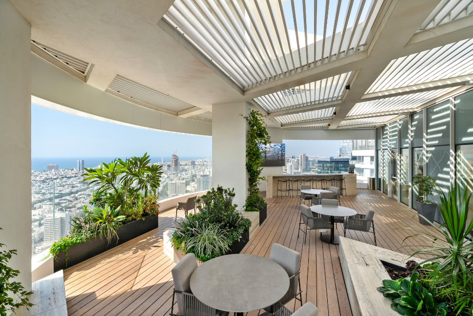 מרפסת עם פינות ישיבה במגדל מגורים