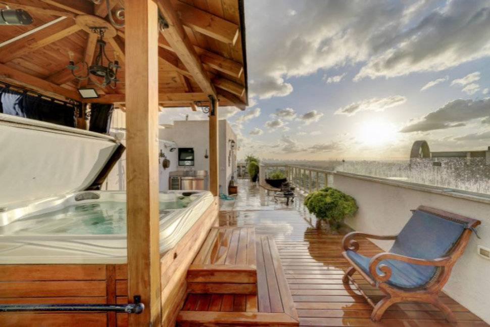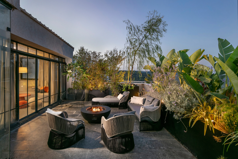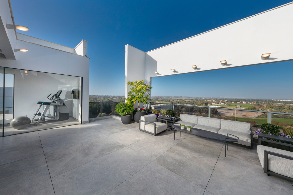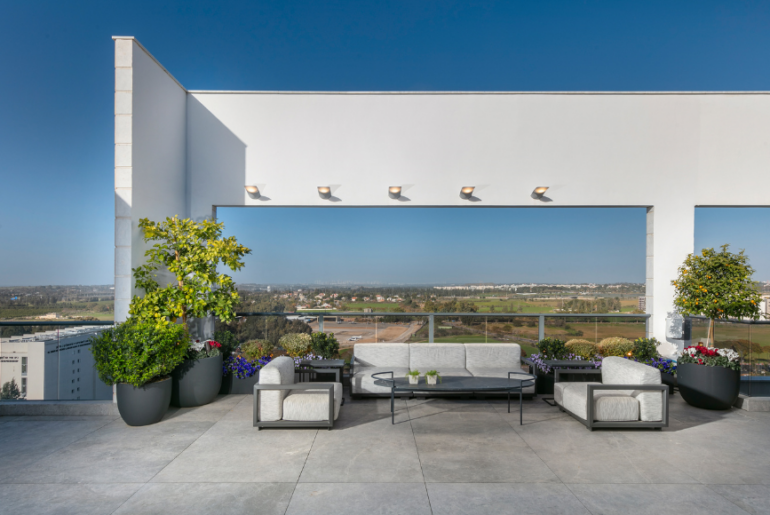 מרפסת עם פינות ישיבה במגדל מגורים