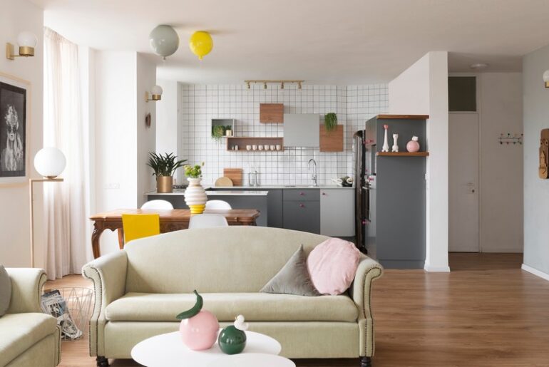 מטבח ורוד וסלון כחולעיצוב: עדי קדמי. צילום: שי אפשטיין