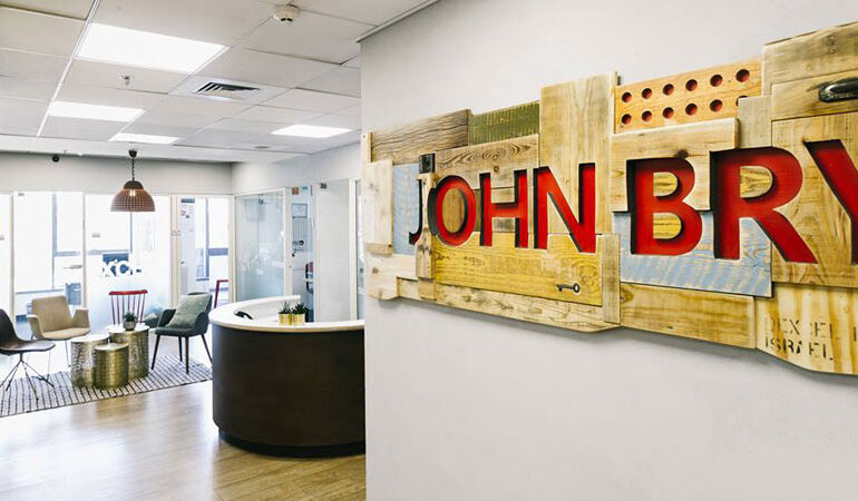 בחלל בן 120 מ"ר, המורכב ממתחם מרכזי וסביבו חדרים שקופים, מוקם מתחם הייעוץ וההכוונה של חברת "ג'ון ברייס". הקונספט העיצובי שעליו ניצחה המעצבת מירית הירשל סורק היה יצירת סביבת עבודה מרהיבה לעובדים וללקוחות עם צבעוניות וחומריות מגוונת שתתקבל על ידי אלמנטים ממוחזרים ותעשייתיים כגון פח חלוד, ברזל ועץ. בכניסה למשרדים תוכנן שלט תלת ממדי מעץ ממוחזר, שבמרכזו לוגו החברה, ובו נשתלו אלמנטים ישנים מברזל.