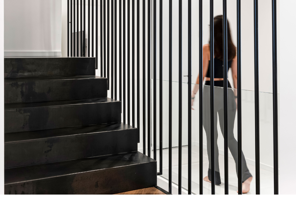 מחיצת ברזל גבוהה בין המטבח ולמדרגות