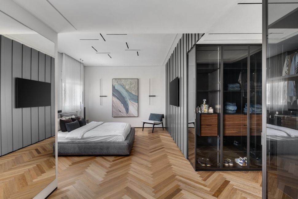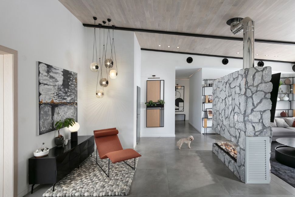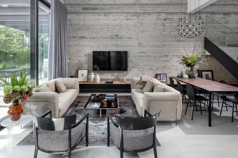 על פי חוקי החוץ והפנים, הגינה מקומה בחוץ ויופייה חודר פנימה דרך הוויטרינות או קירות הזכוכית. אבל, בחשיבה קצת שונה, אפשר להכניס את הגינה פנימה. כך זה נראה במרחב שנועד לשעות הפנאי והאירוח, בין פינת האוכל לפינת הישיבה, עוצב פטיו פתוח לשמים ובתוכו במבוק ענק המוסיף המון ליופי לאוויר מטוהר.