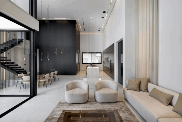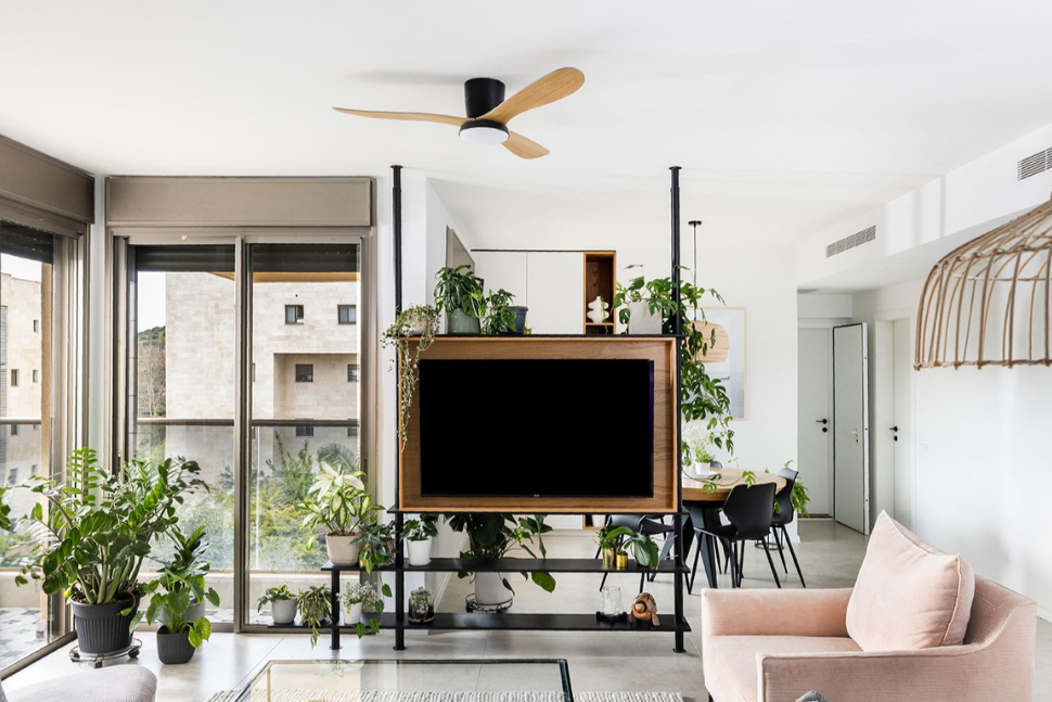 סלון ופינת אוכל מוארים באור טבעי