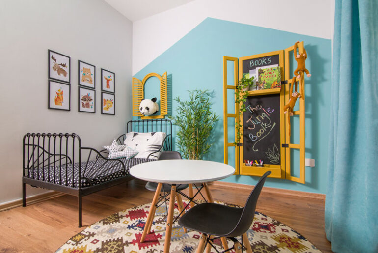 בחדר שאותו חולקים שני אחים נמצא מכנה משותף בדמות חיות. האם המעצבת התחילה מעופר קטן ופלומתי והוסיפה חיות עם הזמן. מאחר שאחד חובב גיאורפיה והשני חובב חיות ושחמט, היא יצרה על הקיר קומפוזיציה מאוחדת של איילים במספר אי זוגי, המאפשרת לעין סגירת מעגל ותחושת הרמוניה בחלל.