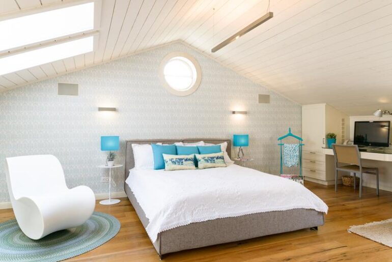 עליית גג לא מנוצלת הפכה, בעזרת סטיילינג מוקפד ומדויק, לחדר אורחים מעוצב מעל הבית, ששם דגש על חופש, שחרור ורוגע
