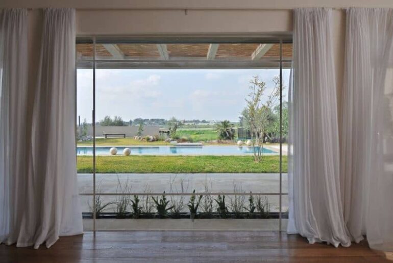 במידה והרהיטים בעלי ריפוד נשלף, מומלץ לאחסן אותם באזור ייעודי בזמן הגשמים. עיצוב: סטודיו BY OLA, אולה אלישר. צילום: עודד סמדר