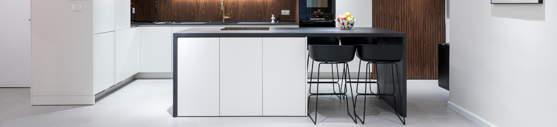 אי מעוצב במטבח משמש לאחסון, לעבודה ולישיבה לארוחה קלילה