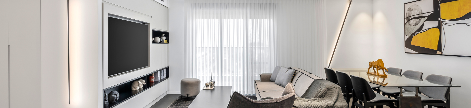 התוכניות נעשו חצי שנה מראש, הביצוע התחיל כשהדיירים קיבלו מפתח לדירה. בהתאם למתוכנן, כל קירות הפנים נהרסו ובוצעה חלוקה מחדש לחדרים, שבמסגרתה בוטל המסדרון הגדול והמיותר ופתאום החדרים גדלו. השינוי המשמעותי ביותר התבטא ביחידת המגורים של ההורים שהפכה למעין סוויטה מרווחת ואינטימית.