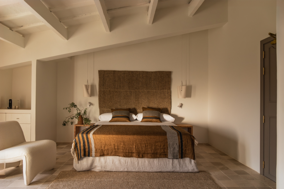 אחד מחדרי האירוח במלון, בעיצוב פנים אורגני כולל הטקסטיל